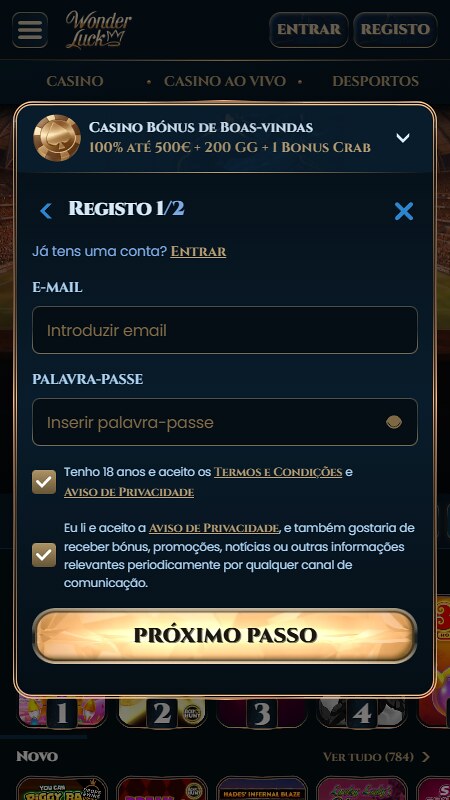 Para fazeres apostas desportivas, tens que estar registado, porque envolve dinheiro real. Por isso, precisas de fazer o registo na WonderLuck Bookmaker e nós vamos-te dizer como o podes fazer de forma simples: