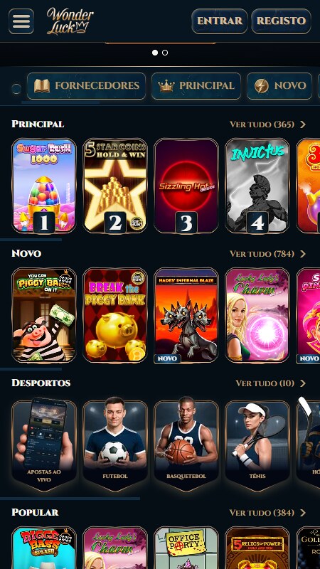 Lançada apenas o ano passado, em 2024, a WonderLuck tem vindo a ganhar grande destaque pela sua plataforma moderna e pelas apostas desportivas. Com mercados ajustados ao português, uma interface intuitiva, ela consegue agradar tanto aos apostadores novatos como aos mais experientes.