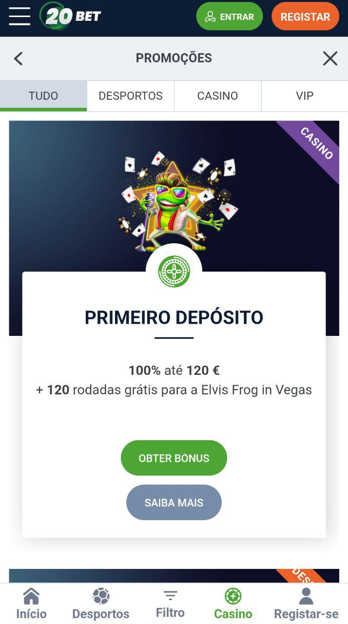 Os Bónus de Boas Vindas são os principais aliciantes aos novos jogadores em qualquer plataforma de casino online. Posto isto, a 20Bet investiu arduamente nesta promoção inicial, oferecendo um excelente bónus de primeiro depósito.