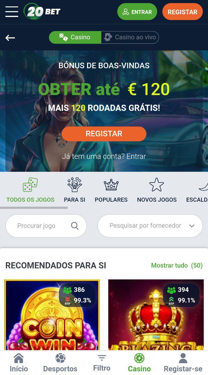 A primeira prioridade do Casino 20Bet é garantir uma plataforma de excelência de jogo, por essa razão apresenta inúmeros jogos de casino. Esta quantidade é possível devido às parcerias de excelência com os melhores providers de jogos de casino do mundo. Assim, na plataforma da 20Bet irá encontrar: