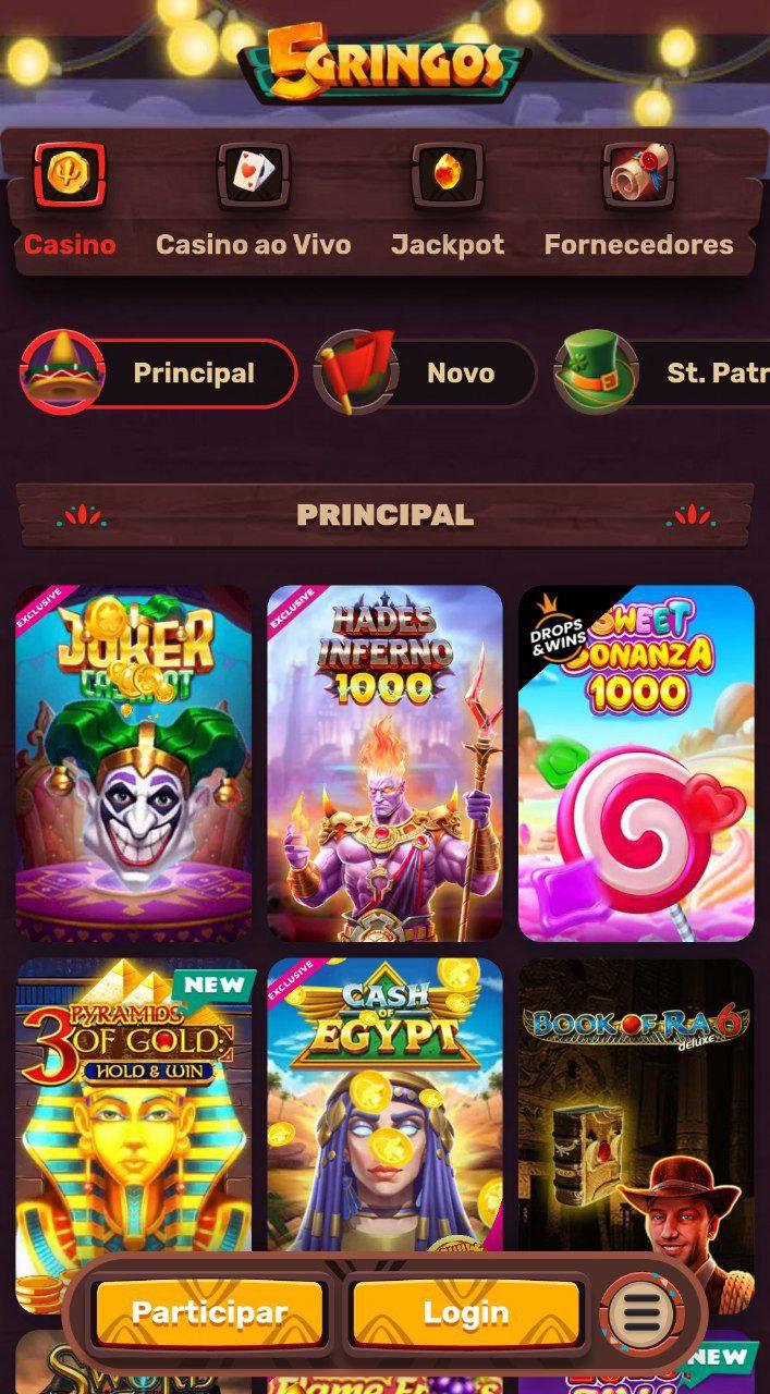 O 5Gringos oferece os seguintes jogos de fortuna ou azar: