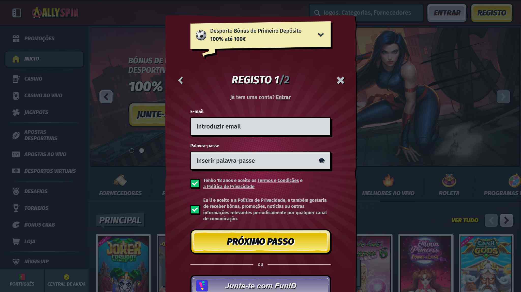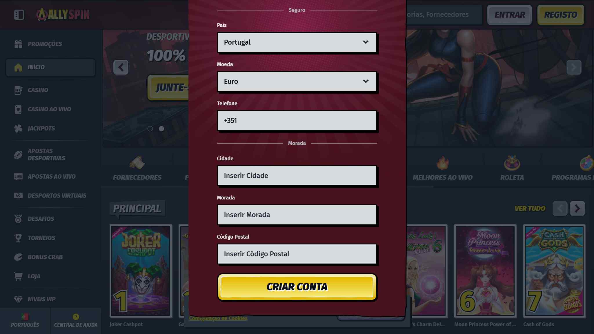 Para jogar a dinheiro real no AllySpin Casino é necessário o jogador estar registado e para isso acontecer terá de seguir alguns passos e preencher algumas informações pessoais. Mas para isso nós vamos indicar como fazer:
