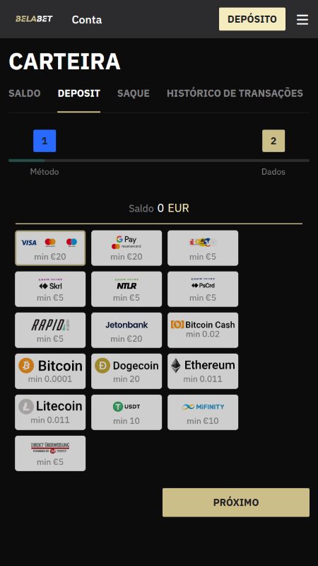 Aqui está a lista de todos os métodos que dá para usar para carregar a conta no Belabet: