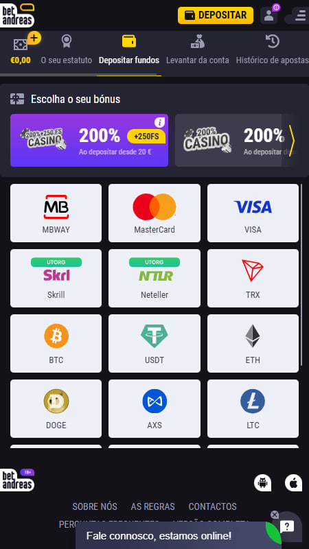 Um bom casino online tem que oferecer os melhores métodos e os mais populares, tanto para depósito como para levantamento. O BetAndreas respeita essa premissa e oferece os métodos mais populares em Portugal.