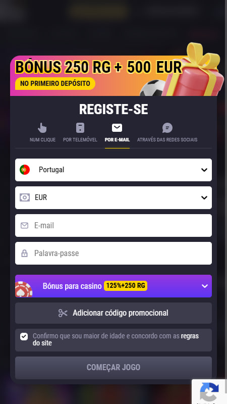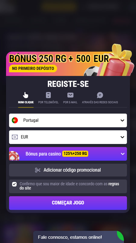 | 👏 Bónus Boas-Vindas 1.º Depósito | 200% até 500 € + 250 RG |