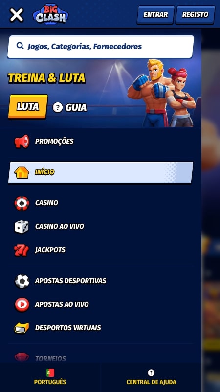 O apoio ao cliente é o exemplo mais concreto de como o BigClash Casino quer orientar a sua estratégia para o mercado português. Todo está no nosso idioma, incluindo o chat online. Além do português, podes ter acesso a outros idiomas mais populares como o inglês ou o francês.