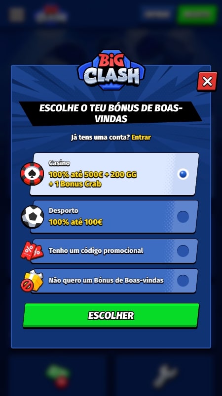 Na tabela seguinte, podes ver alguns bónus da BigClash Casino: