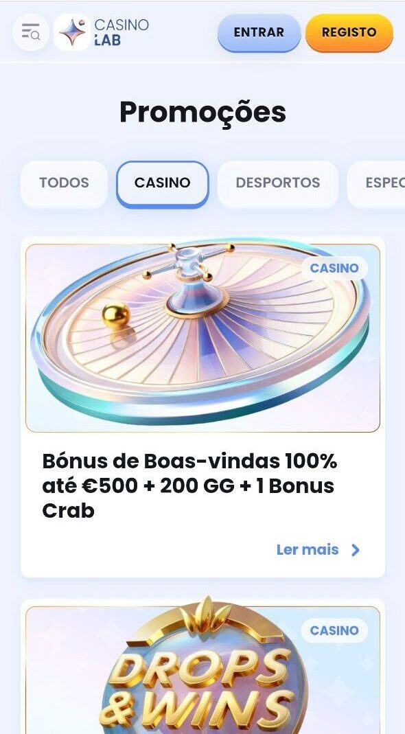 O CasinoLab não disponibiliza app móvel específica para iOS ou Android. No entanto, a versão do site para navegadores em dispositivos móveis foi desenvolvida para oferecer uma experiência totalmente otimizada, com desempenho rápido e eficiente.