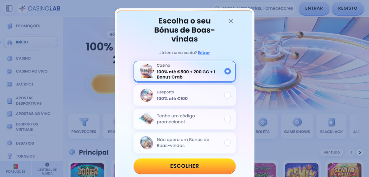 O CasinoLab apresenta os seguintes bónus: