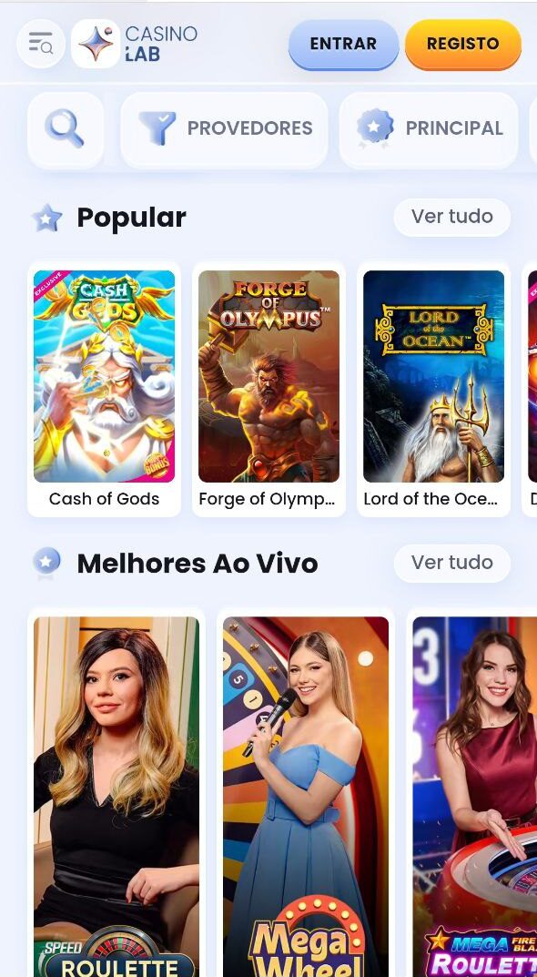 O amplo catálogo de jogos do CasinoLab oferece uma rica variedade de opções, incluindo slots, jogos de mesa, experiências com dealers ao vivo e programas de TV interativos. Entre os títulos mais populares, destaca-se uma seleção diversificada que combina títulos destas categorias, proporcionando uma experiência abrangente e envolvente para jogadores com diferentes preferências e estilos de jogo.