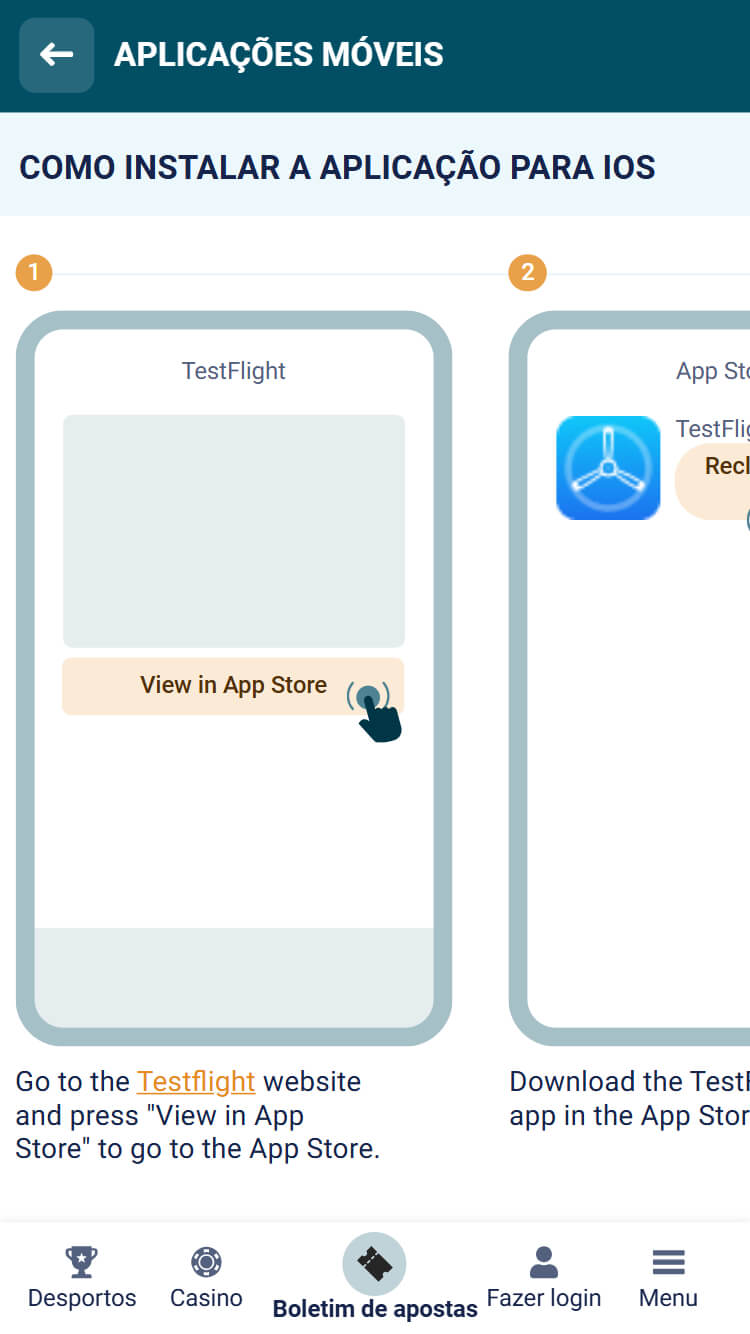 Pode também fazer o download da app tanto para iOS como para Android no fundo da página.