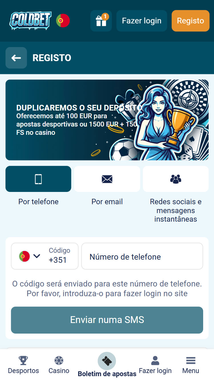 O Coldbet está tão bem conseguido, que até o registo é um processo simples e acessível a todos. Podes escolher logo o teu bónus de boas-vindas ou optares por não o receber nesta fase.