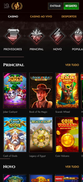 O casino Legiano conta com jogos de casino online e jogos de casino ao vivo. A marca apresenta ainda a seção “Jackpots”, para os jogos com maiores recompensas.