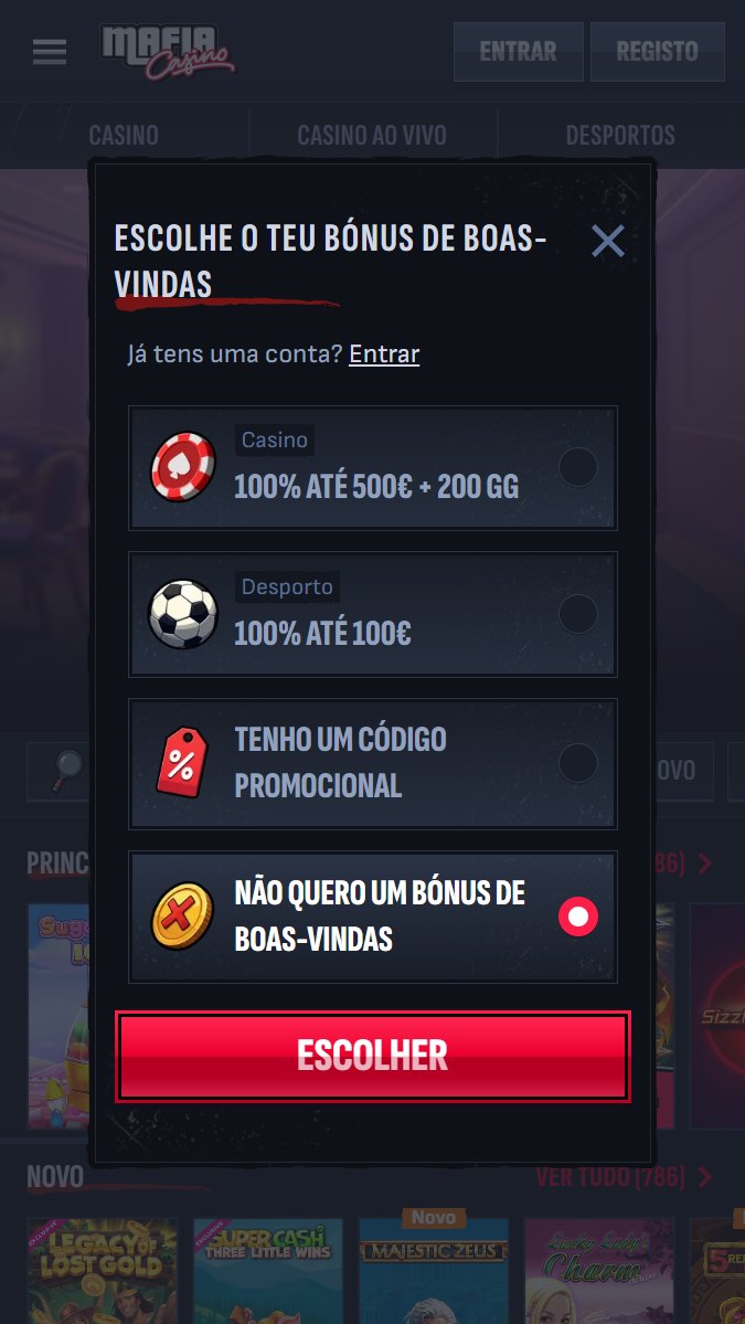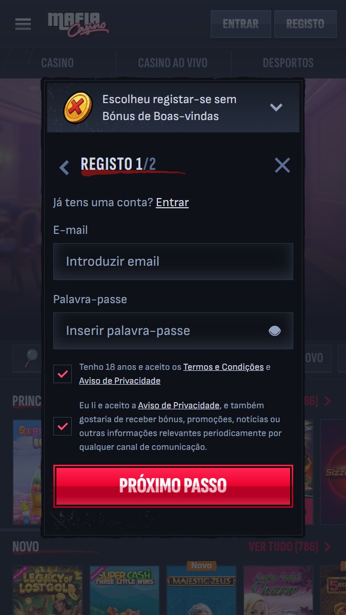 Como podes conformar, criar conta na MafiaCasino é simples e rápido.
