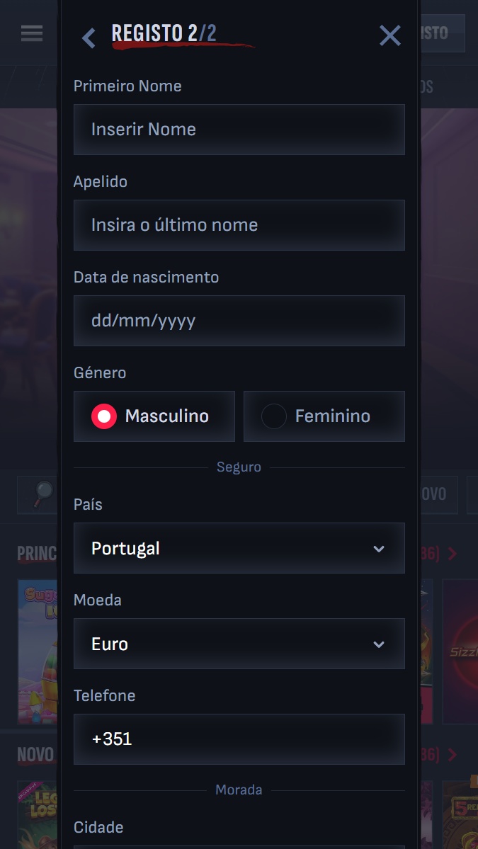 Quer acedas através do computador ou ao site móvel desde o telemóvel, fica a saber que a navegação é simples e bem organizada. O registo é muito rápido e direto, o que é excelente para os jogadores inexperientes.
