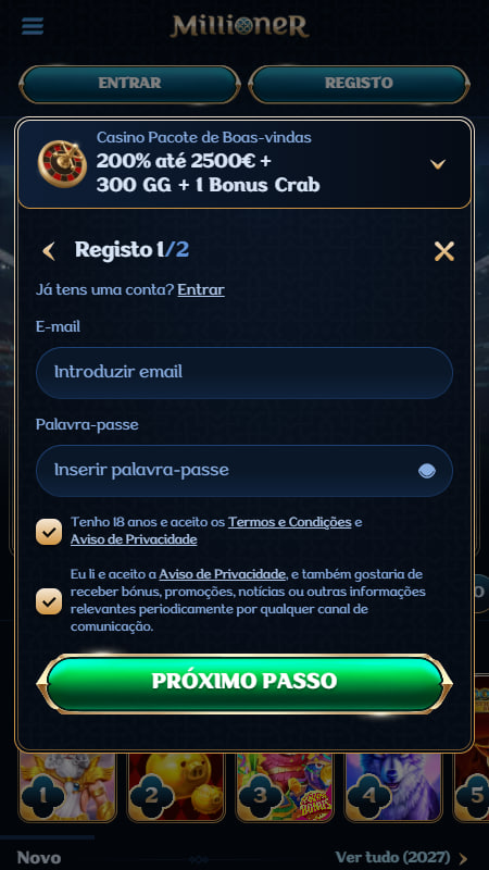 Para conseguires entender tudo, vamos criar o seguinte guia passo-a-passo, que te vai guiar de forma perfeita no ato do registo. Assim é como te podes registar no Millioner Casino: