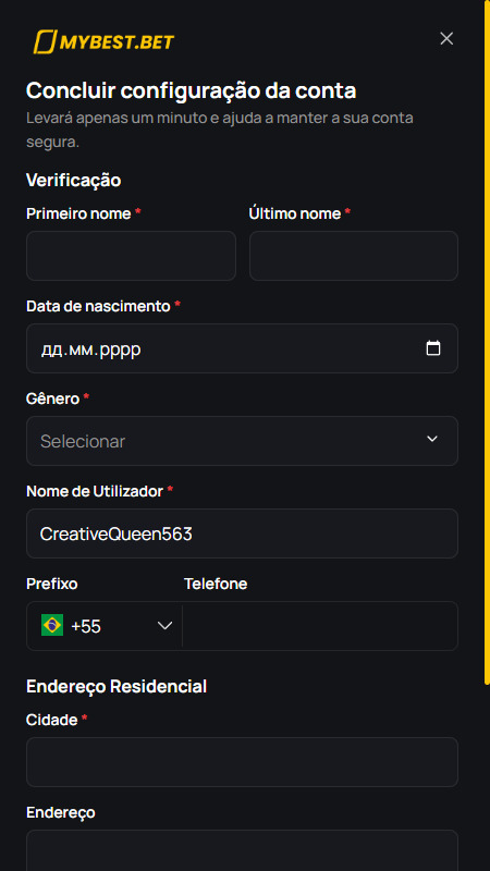 É preciso estar registado para apostar em qualquer desporto ou jogar com dinheiro real em qualquer jogo da MyBest. Por sorte, esta casa de apostas mantém as coisas bastante simples, e o registo é apenas uma delas. Antes de começar a apostar, é preciso registar-se no site. Para o fazer, basta seguir estes passos:
