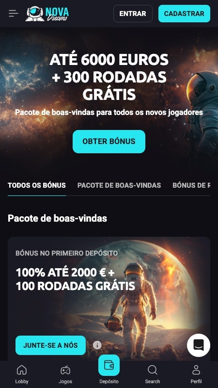 Estes são alguns dos bónus e promoções do NovaDreams que tu podes resgatar: