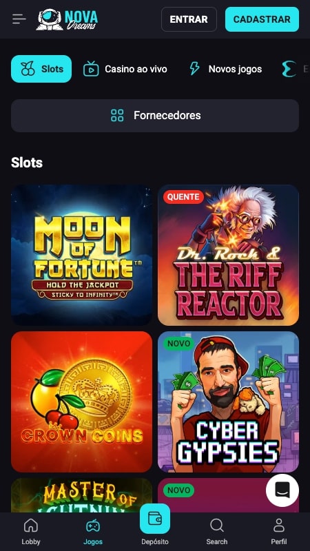 Relativamente ao portfólio da NovaDreams, convém dizer que por ainda ser recente (2025) ele está a completar-se aos poucos. Já conta com mais de 4.000 jogos, onde se inclui as slots, jogos de mesa e casino ao vivo. Isto é o resultado de parcerias fortes com os melhores fornecedores de jogos do mercado, que se prevê que seja mais reforçada ainda com a chegada de novos jogos.