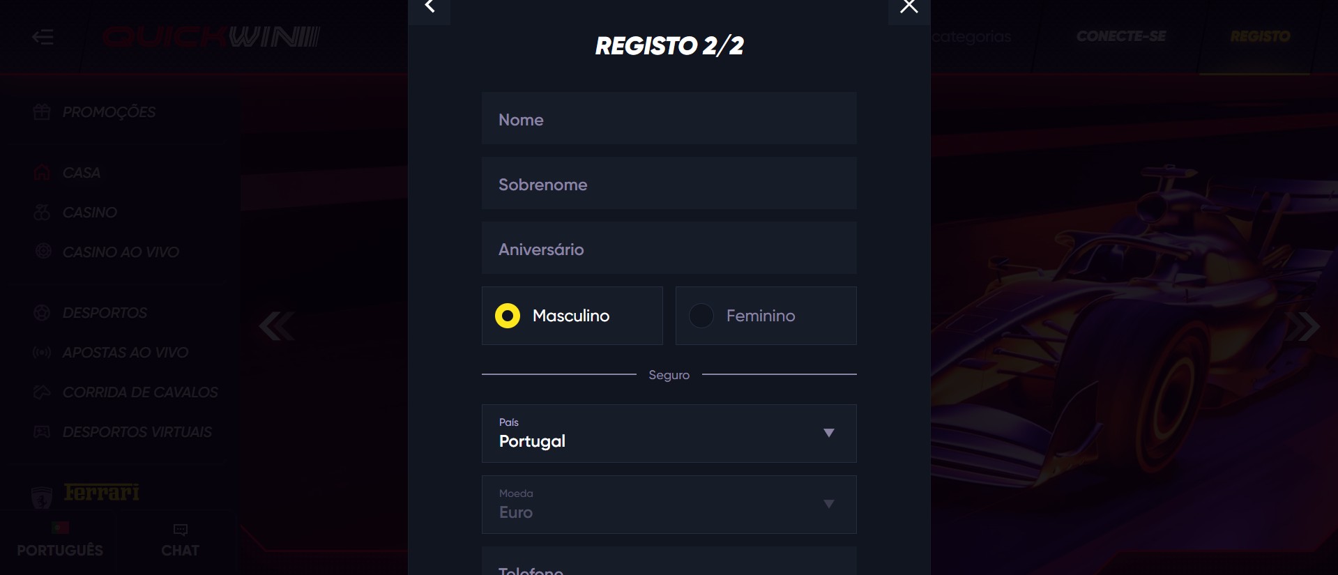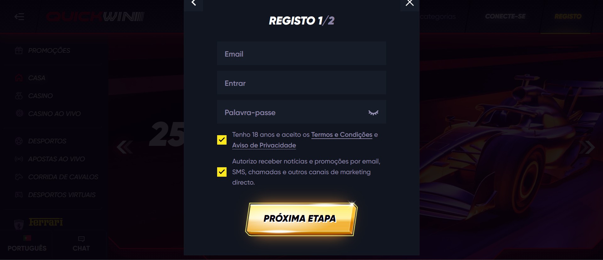 Para o jogador conseguir jogar e ganhar dinheiro real, terá que estar devidamente registado na plataforma da Quickwin Casino. Para isso acontecer será preciso seguir algumas etapas e uma delas é o registo. Vamos ver como fazer: