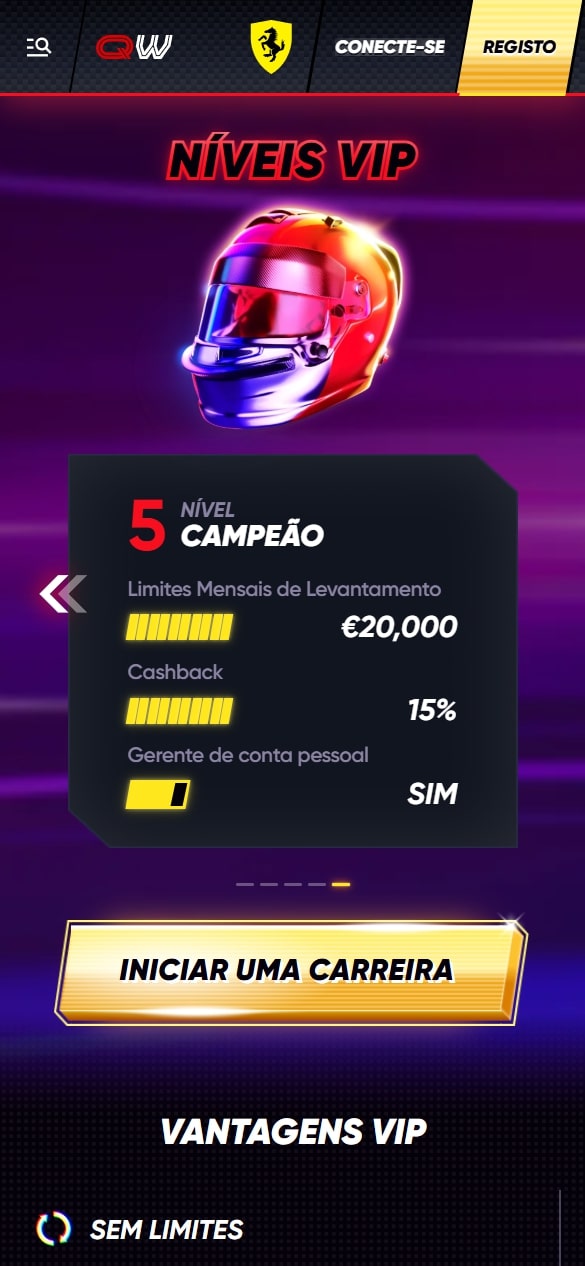 O programa de fidelidade do Quickwin Casino tem 5 níveis. Vamos conhecer: