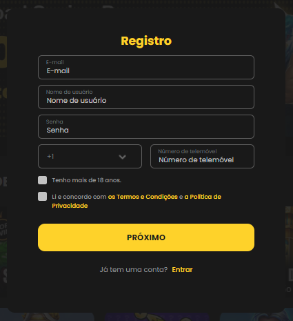 Para se registar no Royal Fortune, o jogador precisará ter alguns dados importantes em mãos. O formulário deve ser preenchido corretamente para que não haja problemas no futuro. Somente maiores de 18 anos terão permissão para criar conta na plataforma, então, lembre-se disso. Abaixo, jogadores encontrarão um guia rápido ensinando como realizar o registo. Veja e aprenda: