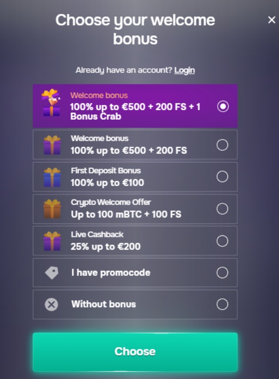 O bónus de boas-vindas pode ser reivindicado a partir de um depósito de EUR20. O máximo a ser recebido é de 100% até EUR500. É importante lembrar que depósitos feitos com Neteller e Skrill não são elegíveis para reivindicação da oferta de boas-vindas. Depois de receber o valor de bónus, cada jogador terá 7 dias para sua total utilização antes da expiração. A partir do dia que foi depositado, o jogador receberá 20 free spins por dia durante 10 dias, totalizando 200 rodadas grátis.
