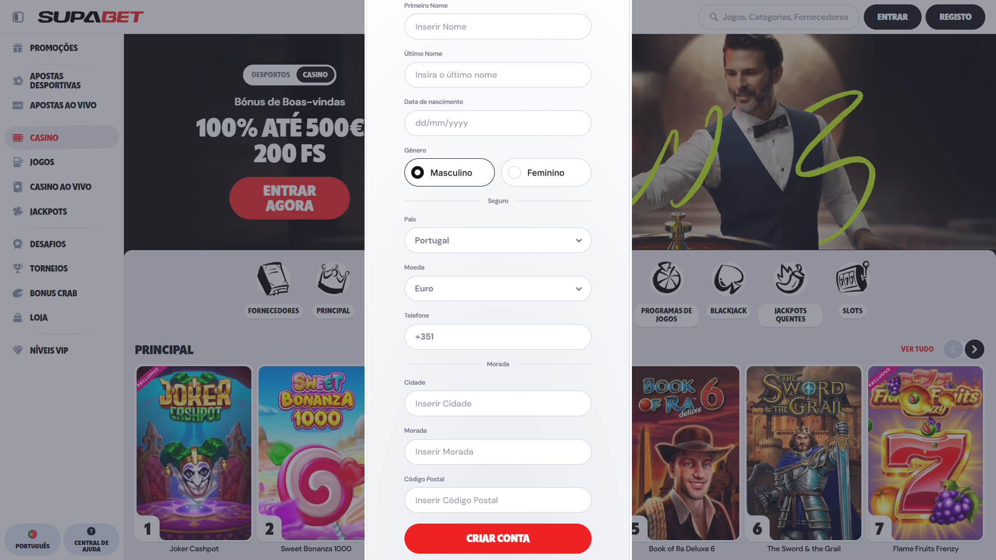 De referir também que para o registo ou para jogar neste casino, todos os jogadores têm que ser maiores de idade, ou seja, no mínimo com 18 anos para o seu registo ser considerado válido. Mas vamos ao registo: