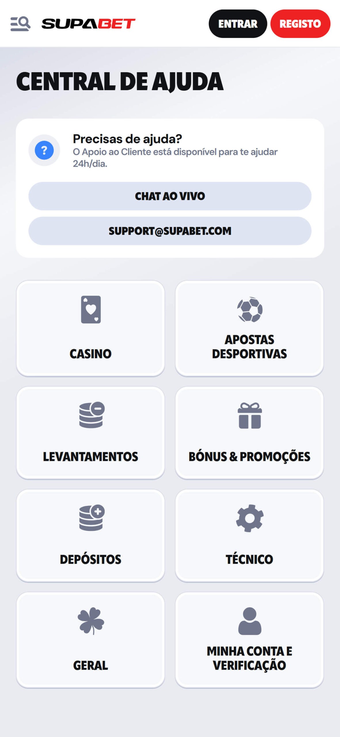 Relativamente ao apoio ao cliente, este pode ser acedido por três formas, chat ao vivo disponível 24/7, email e ainda uma secção de FAQ onde se encontra as perguntas e respostas mais frequentes.