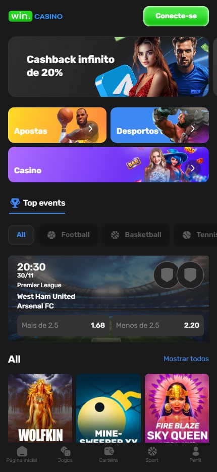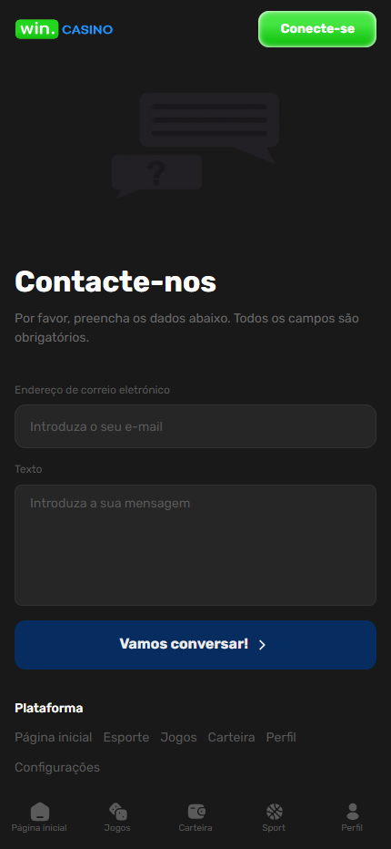 O Win.casino não oferece uma aplicação móvel para iOS ou Android. No entanto, o seu site móvel, acessível pelo navegador de qualquer dispositivo, é totalmente otimizado para ecrãs menores, garantindo uma interface ágil, navegação fluida e uso intuitivo.