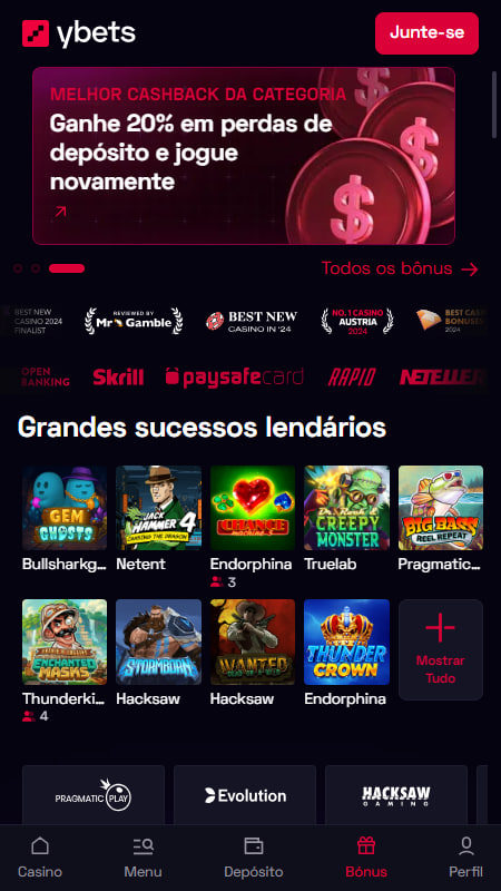 Eles são um casino recente, somente em 2025 estão a fornecer entretenimento de qualidade online, por isso, é natural que ainda não haja qualquer prémio atribuído ao Ybets Casino. Quanto a reconhecimentos, só os muitos utilizadores que jogam no seu casino online.